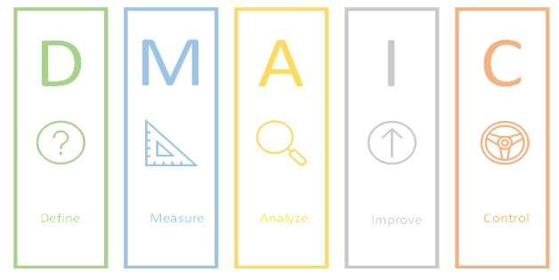 DMAIC: DMAIC is a data-focused method used in Six Sigma to improve processes. It stands for Define, Measure, Analyze, Improve, and Control. These five stages combine to form a cycle. First, customers are defined. Then, performance is measured, and the data is analyzed. Finally, improvements are implemented and controlled to ensure the process remains in optimal condition.
